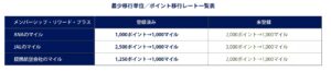 ・ 年間(1月~12月)、最大4万マイル、1:1で交換可能
