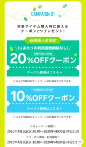 ・新規購入者 20%OFFクーポン (これ会計で使う)