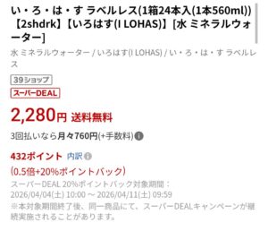 いろはす560mL、実質1本16.3円!