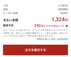 →1324円+242楽天ポイント+690pt(LINEキャンペーン)
