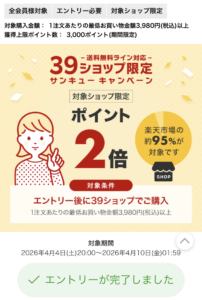 ・2倍エントリー(4/8限定)