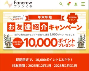 ファンくるポイントの貯め方、モニターの方法を知りたい方はこの記事へ。